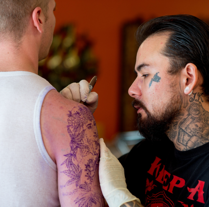 Travis, our other shop owner, has been tattooing for over 12 years now. Travis truly puts his everything into his work, producing custom hand drawn, beautiful designs and incredible soft black and grey tattoos in his own style.